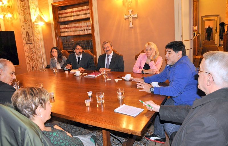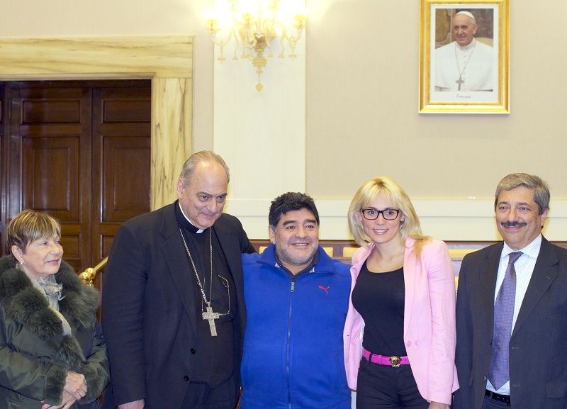En las fotos, además de Maradona y su señora, aparecen el padre Lombardi, monseñor Sánchez Sorondo, la escribana Cascales, Diego Cutili y David Selser.