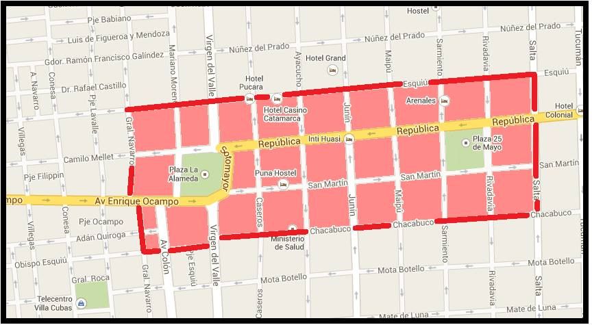 Esquiú; al Este: calle Salta y al Oeste, calle General Navarro.