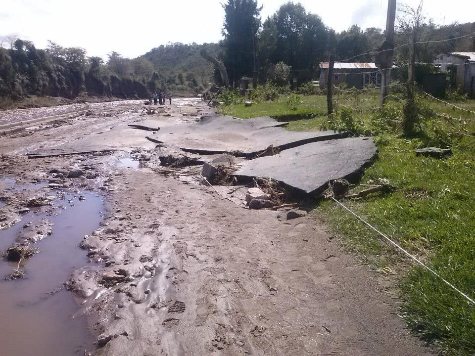 derrumbes, casi la cortó a la cinta asfáltica en un sector, y después hacia la