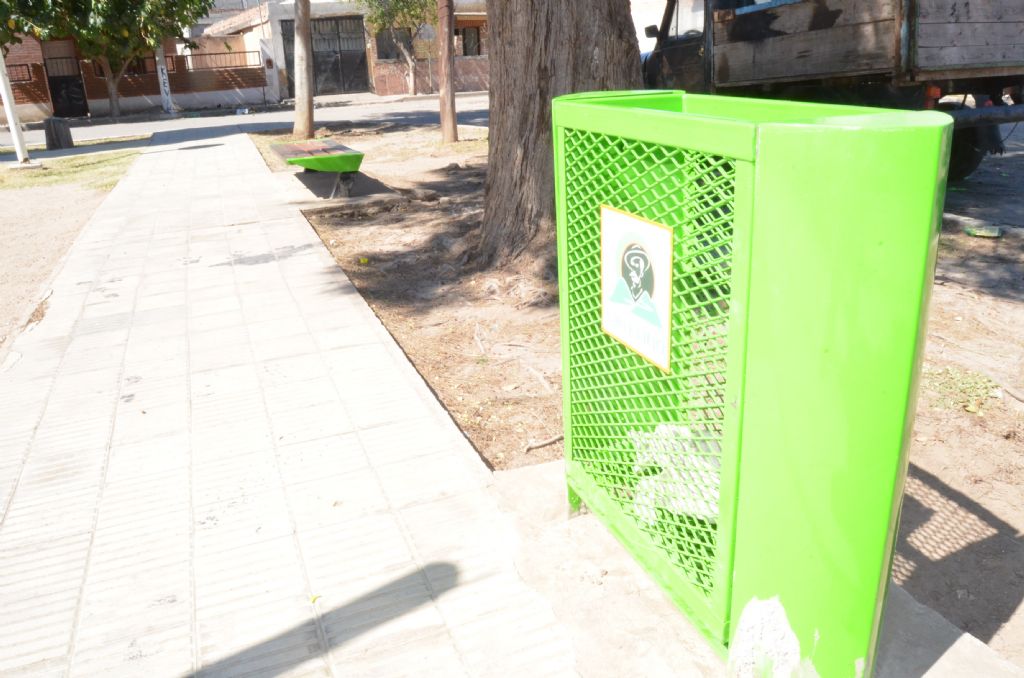cesto de basura, bancos y nuevo arbolado. Al mismo tiempo se trabaja en la plaza Juan Pablo II, donde hay un
