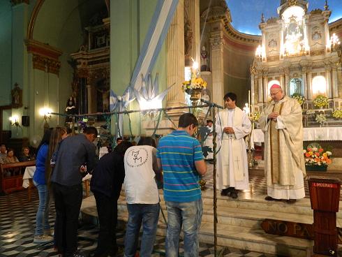 Luego continuó la celebración con la proclamación de la Palabra de Dios, a cargo de los alumbrantes, tras lo cual el Obispo se dirigió a la asamblea, en especial a los jóvenes, muchos de ellos pertenecientes a movimientos e instituciones, como también a la Pastoral Vocacional y de ayuda a la formación de los seminaristas, a quienes les dio la bienvenida y rogó a la Virgen que los cobije bajo su manto. También comentó que durante este día rindieron su homenaje con una pequeña peregrinación niños de la escuela primaria y adolescentes de las escuelas secundarias.
