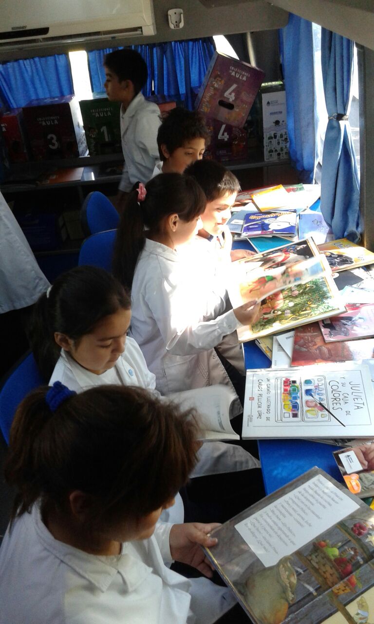 Luego, en compañia de sus respectivos docentes, los chicos subieron al Bibliomóvil, para elegir un libro, a su gusto, y leerlo solos, acompañados de su maestra.
