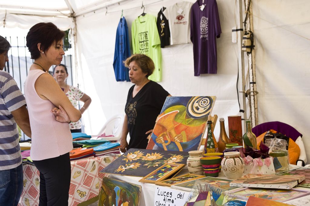 productos que se pueden ver y comprar en la feria: desde tejidos a artesanías