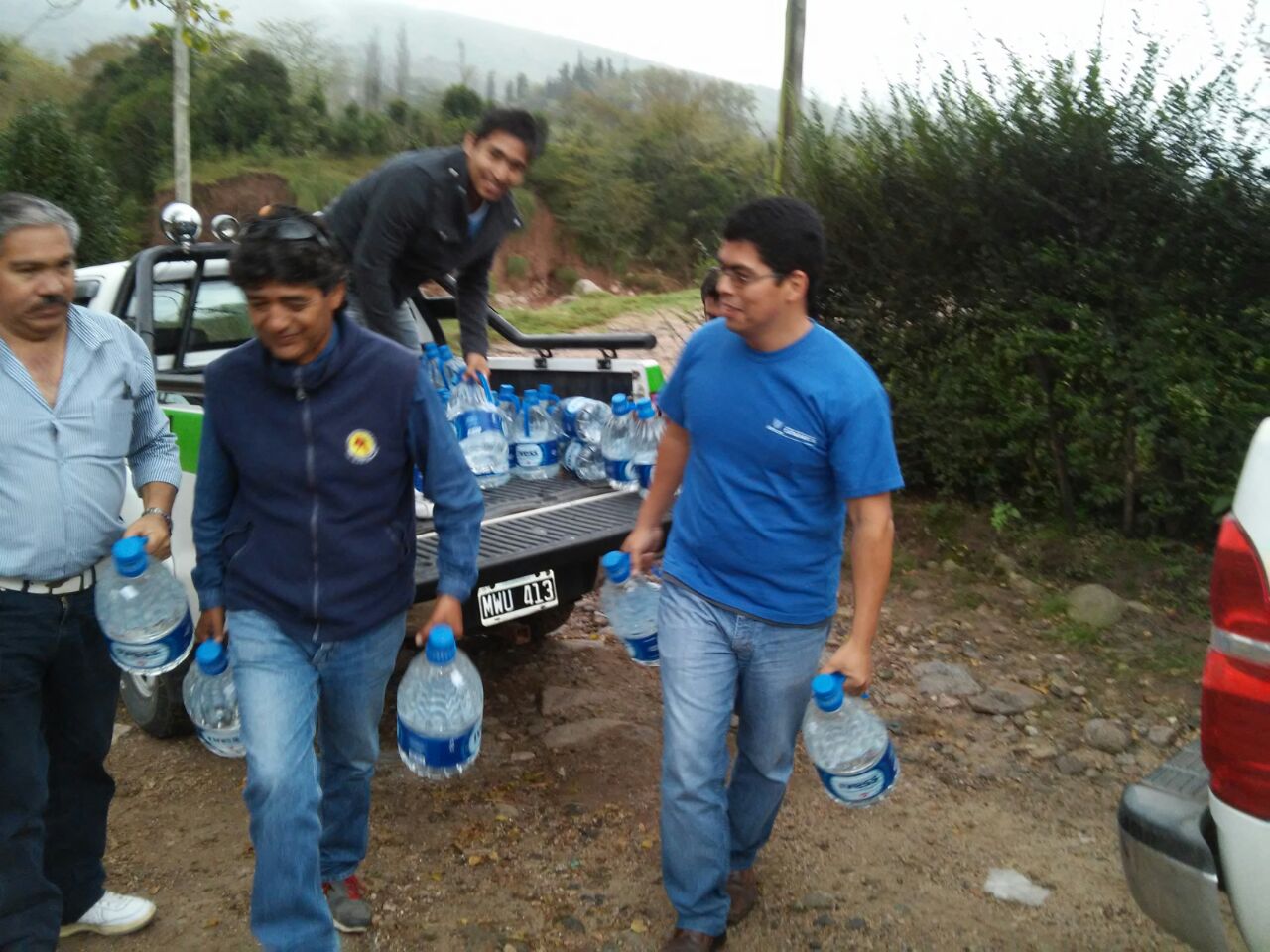 dejar botellones de agua en el hospital de la zona donde se centralizan todas