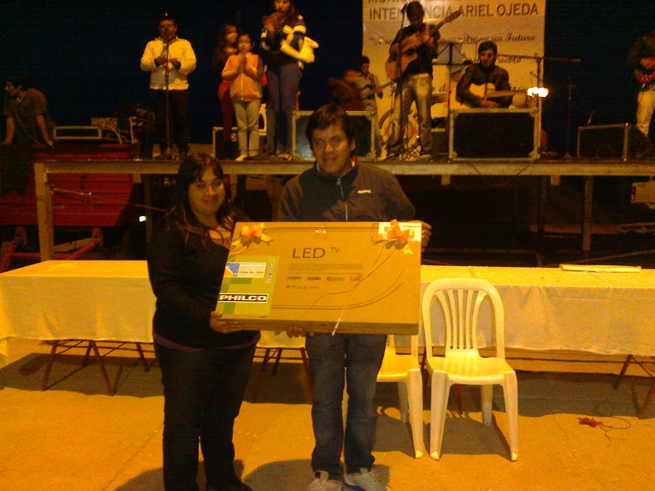 trata de Daniel Mansilla, empleado municipal, que se ganó un LCD, premio que fue