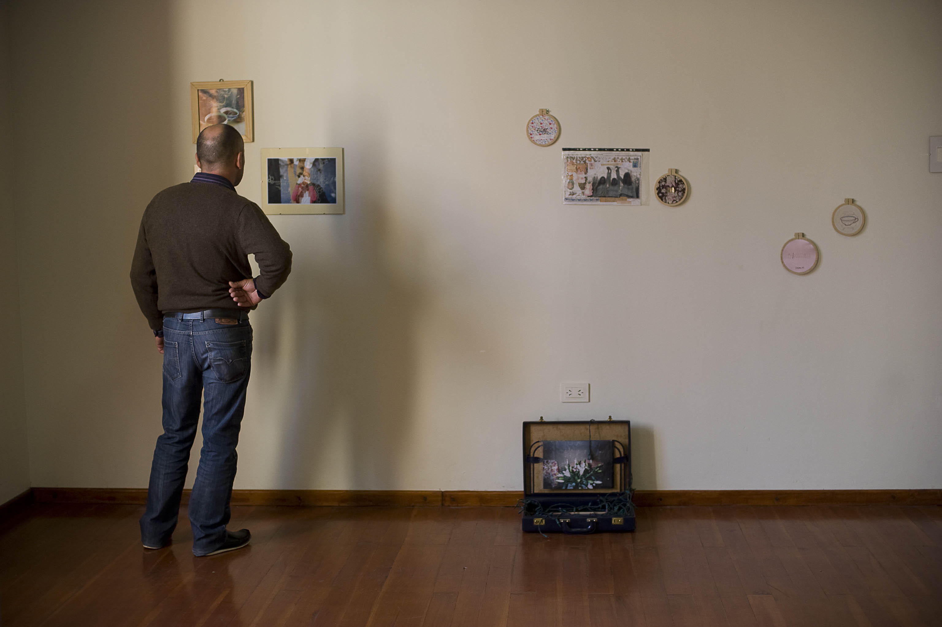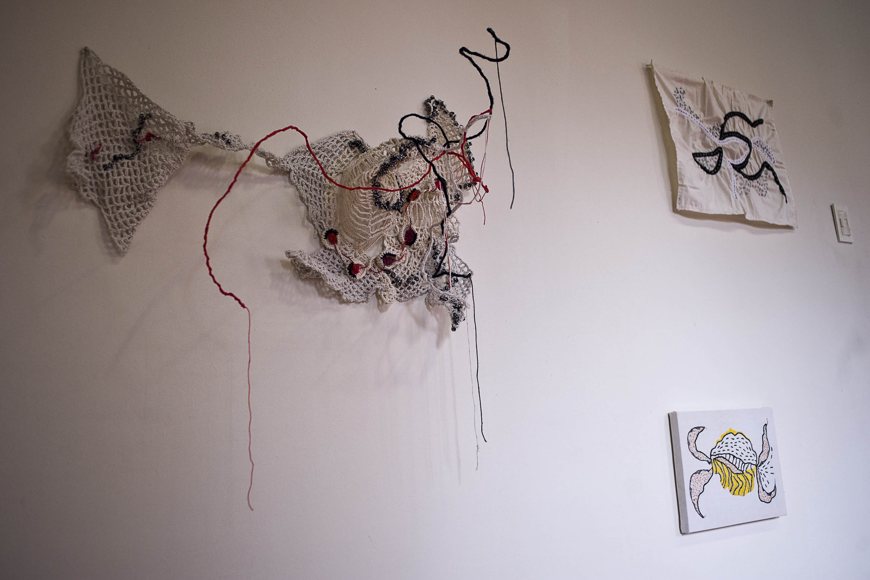 textil, fotografías intervenidas con bordados y otras técnicas.