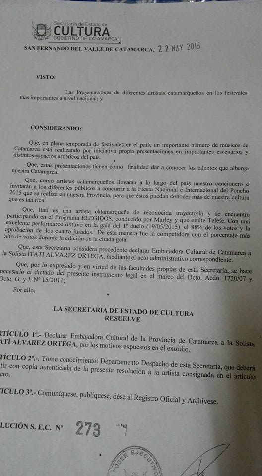 "Embajadora Cultural de la provincia". Toda una alegría para mi! ! Y