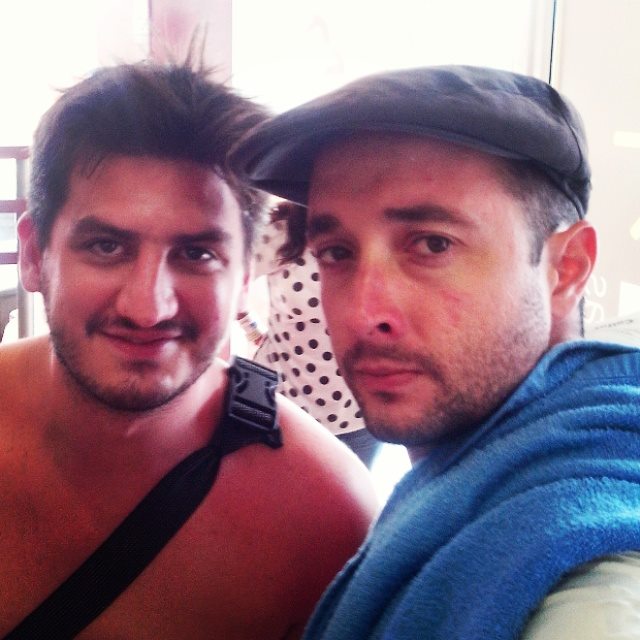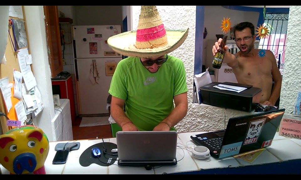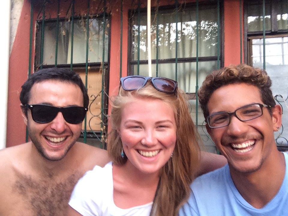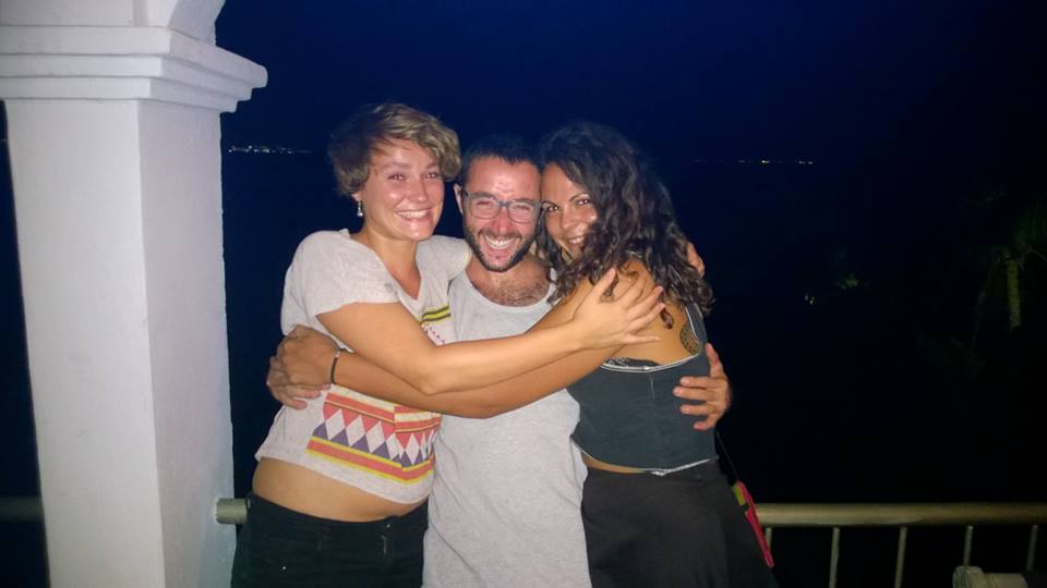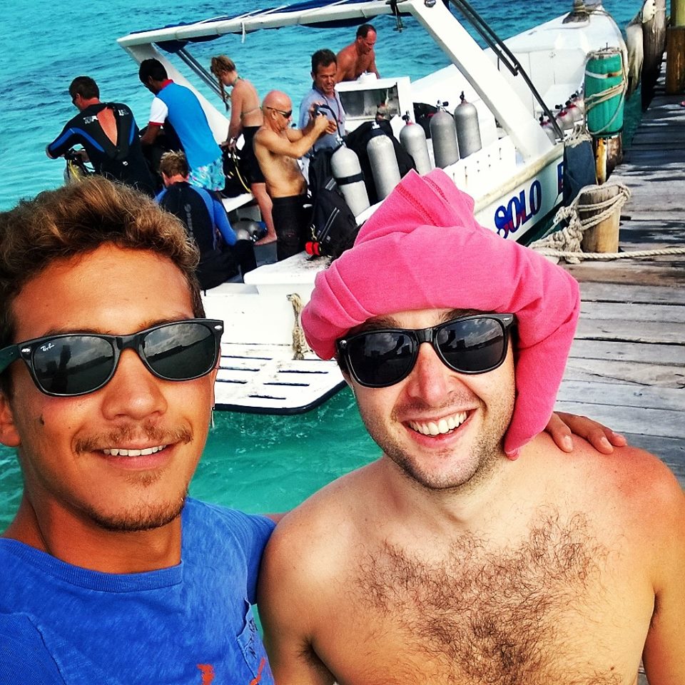"Con la dupla española. El de casaca roja es Braulio, madridista perro y gran amante del fútbol y los autos. El mosstro de pañuelo naranja es Juanma, compañero del hostel y nuestro grandísimo instructor buceo".