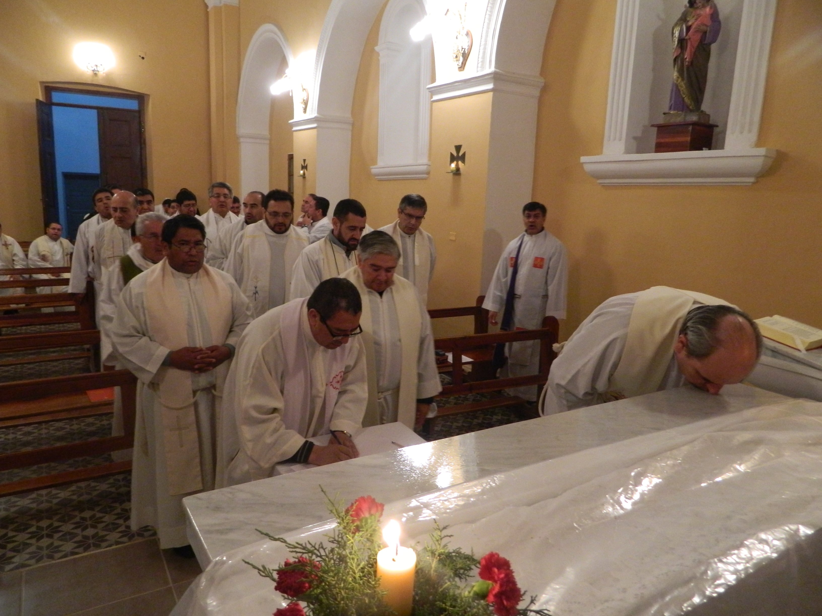 bendición final, los sacerdotes firmaron el acta y besaron el altar.