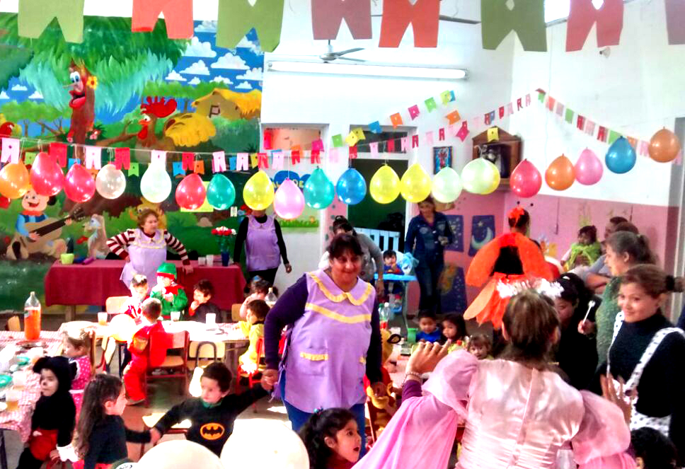 payasos, disfraces, obsequios y un brindis. Además los infantes con padres y