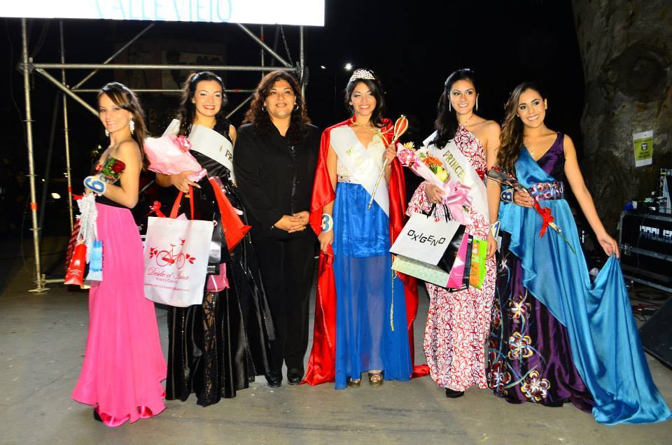 acompañada por Sofía Sala, como 1º Princesa; Belén Córdoba, 2º Princesa; María