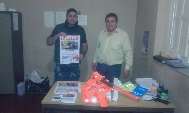 Por otra parte, este martes, Romero se reunió con el Jefe de la Comisaría de Pomán, Crio. Martín Romero, a quien le hizo entrega de chalecos, bandoleras, conos y balizas refractarias, material bibliográfico y folletos sobre prevención de accidentes viales, normas y señales de tránsito.