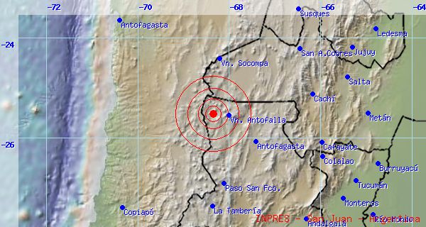 horas, con epicentro a 47 Km. al Sur de La Casualidad, 113 Km. al Noroeste de