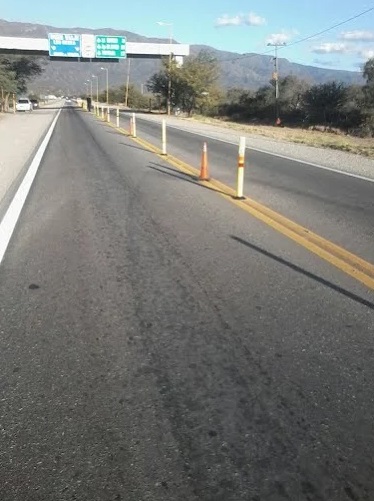 La nueva señalización, que fue solicitada por la Secretaría de Seguridad de la Provincia en el marco de la medida de reforzar el control vehicular caminero, y consiste tanto en carteles informativos como en la colocación de tachas luminosas solares como tachas reflectivas, además de delineadores deletables separadores de los dos carriles.