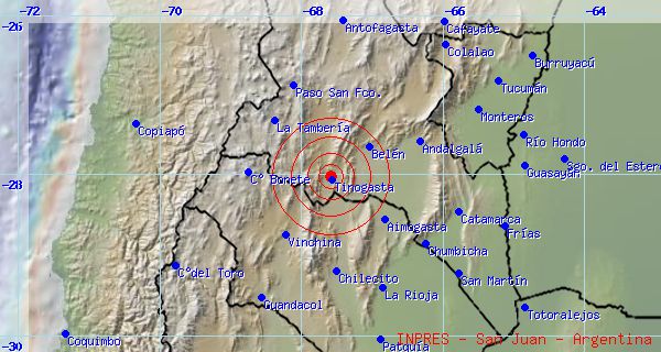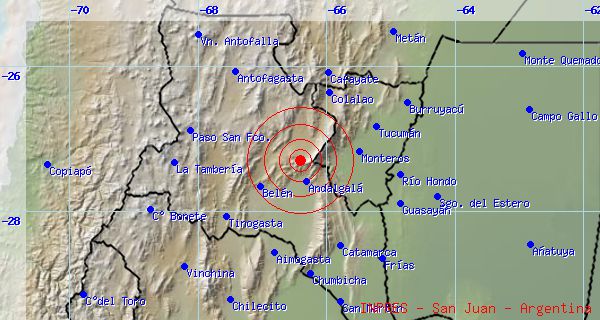 18.30 horas, cuyo epicentro fue a 33 Km. al Norte de Andalgalá, 73 Km. al Noreste