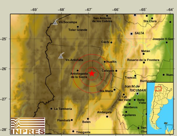 Epicentro: 19 km al N de Catamarca, 63 km al S de La Cocha,