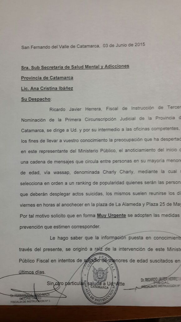 involucrados los adolescentes y jóvenes catamarqueños, por lo cual se alertó