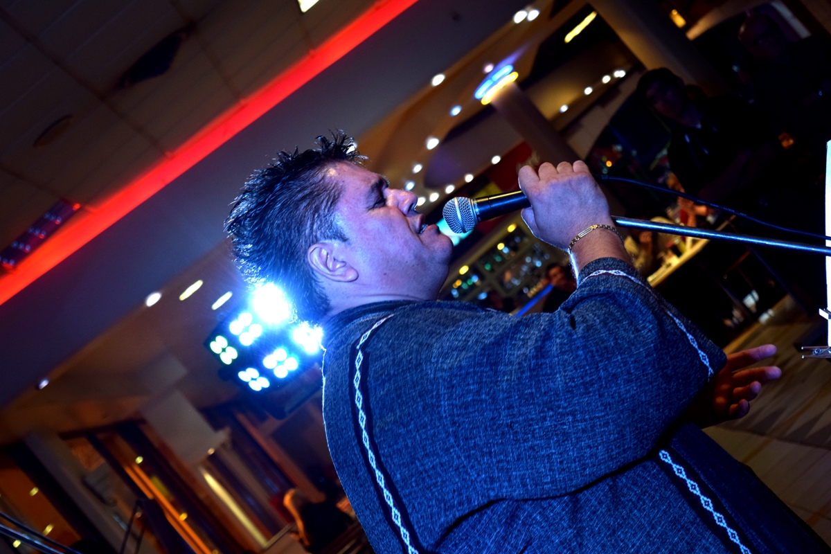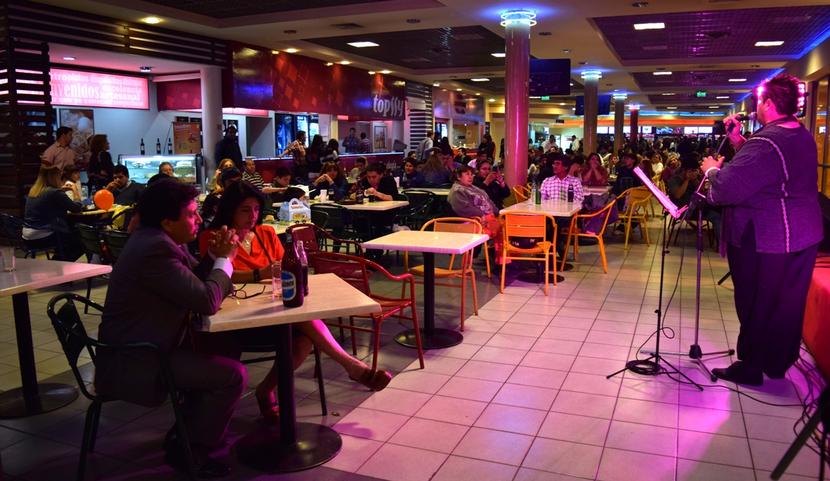 folklore étnico en el patio de comidas de la terminal, haciendo una fuerte
