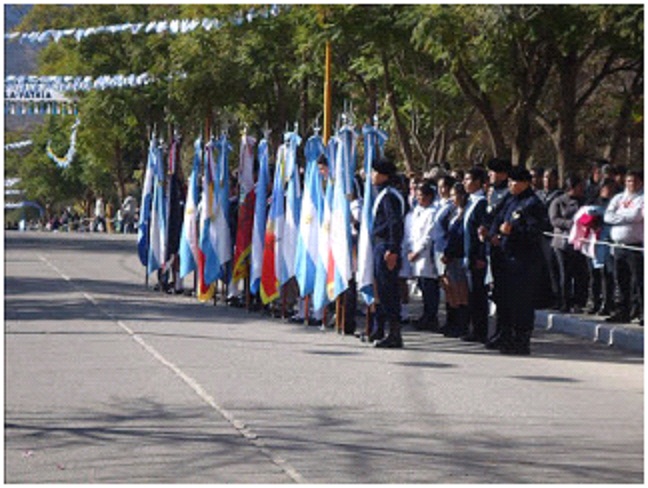 oficiales, abanderados de los 32 establecimientos de la ciudad, docentes, alumnos