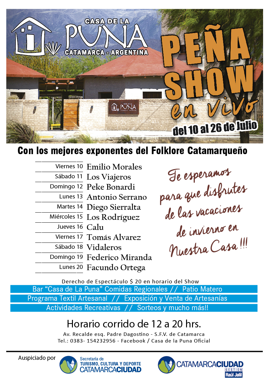sábado 18 "Los Vidaleros”, el domingo 19 Federico Miranda, el lunes 20 Facundo