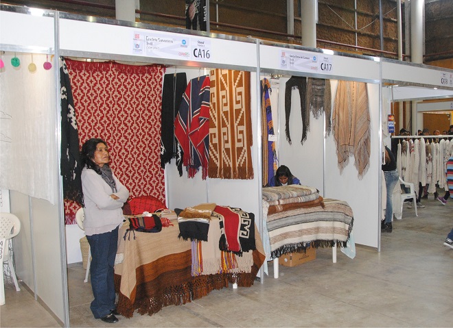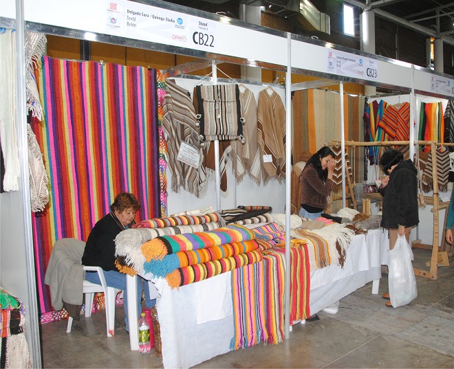 En otro stands, también se pueden ver las prendas elaboradas en telares rústicos, de Héctor Laudino Carrizo, el renombrado y ganador Ciriaco Reinoso, quien además está tejiendo en su telar un hermoso poncho de vicuña, uno de los hilos más hermosos que tiene nuestra tierra.