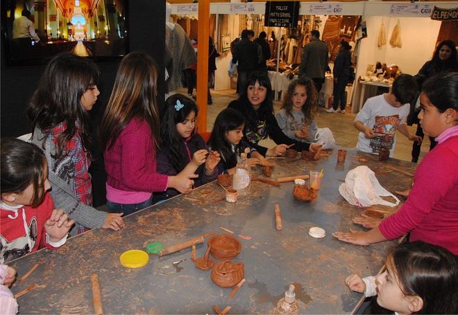 El taller es dictado por Marcia Vergara, miembro del taller de cerámica que se dicta en la manzana de turismo, en esta oportunidad enseña técnicas ancestrales para realizar utensilios, la convocatoria es furor y cada vez son más lo niños que participan del interesante taller.