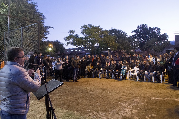 En su discurso de inauguración, el Intendente Jalil aseguró que la cancha es un signo de "un perfil de obra pública destinada al vecino que buscar generar espacios de contención e inclusión para todos". Además, instó a los vecinos a conformar un centro vecinal para mantener un contacto más fluido con la gestión municipal y a disfrutar de la nueva cancha.