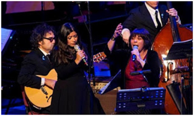 Filiberto, más Lilian Saba en el piano, Micaela Chauque en aerófonos y un grupo