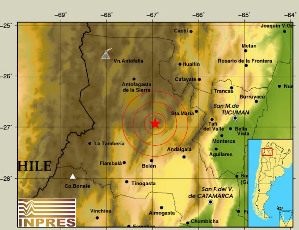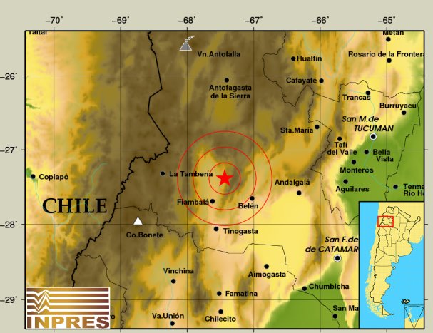 Epicentro: 38 km al NE de Fiambalá, 50 km al NO de Belén, 76