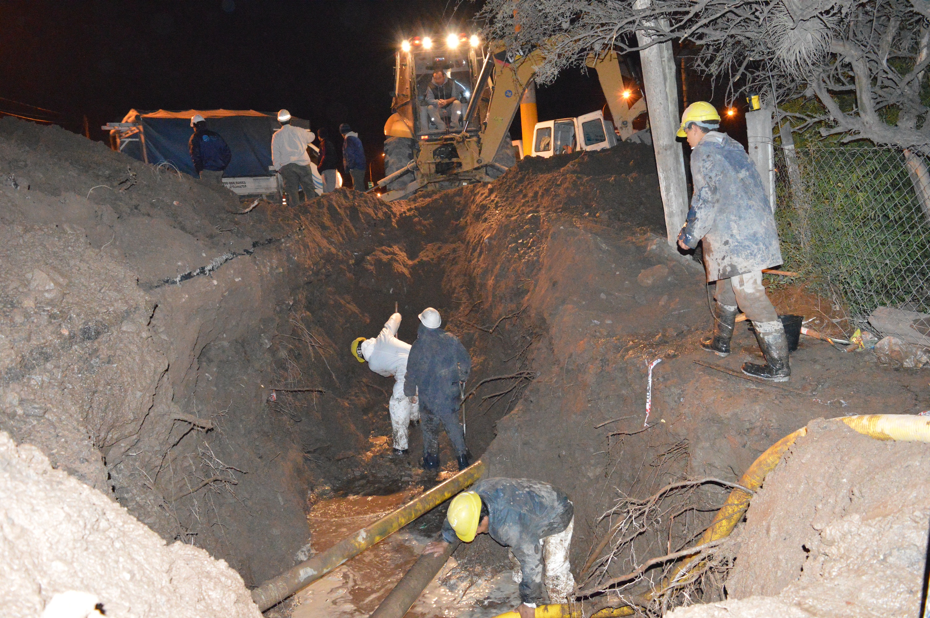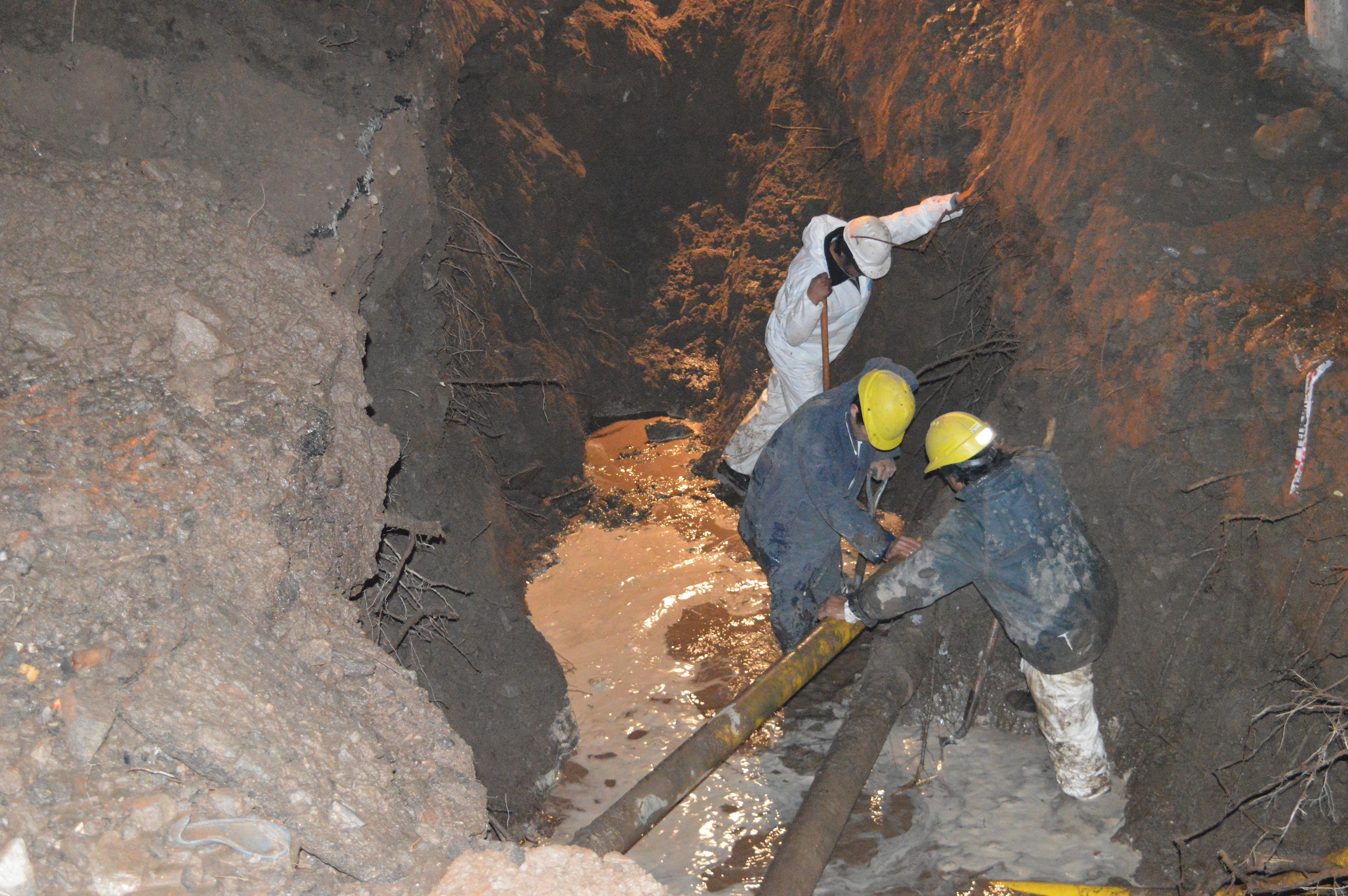 Desde primeras horas de la tarde de este jueves, personal de la empresa Aguas de Catamarca trabaja en la reparación de un tramo de la red de agua potable en el ingreso a Banda de Varela.