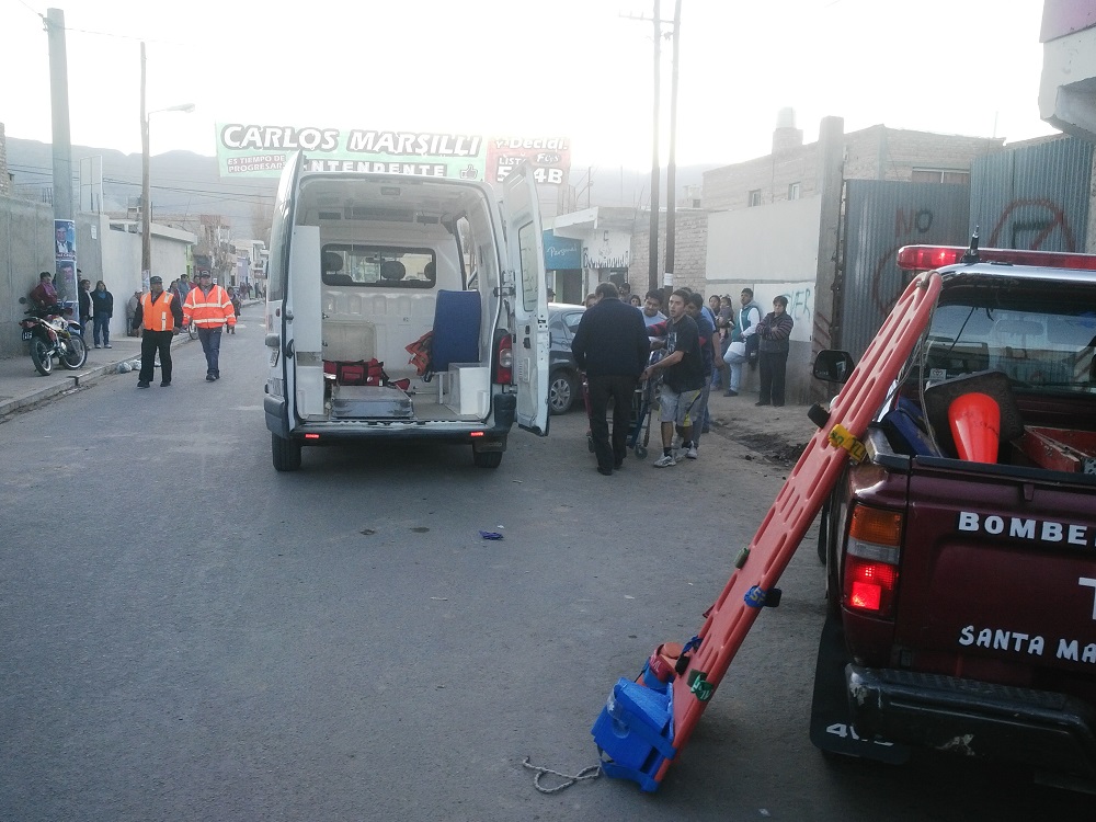 Rápidamente llegaron los bomberos quienes recibieron el llamado de los compañeros que estaban en la panadería trabajando junto a este joven.