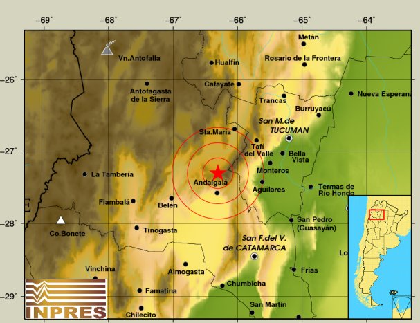 Epicentro: 30 Km. al N de Andalgalá, 70 Km. al O de