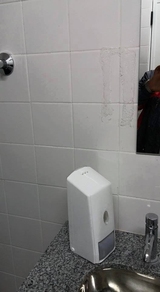 dispenser de jabón liquido que está también en el baño de las mujeres”,
