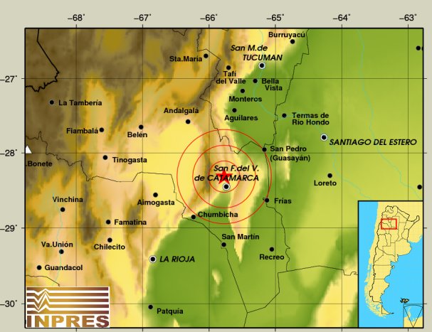 Epicentro: 17 Km. al N de Catamarca, 63 Km. al S de La