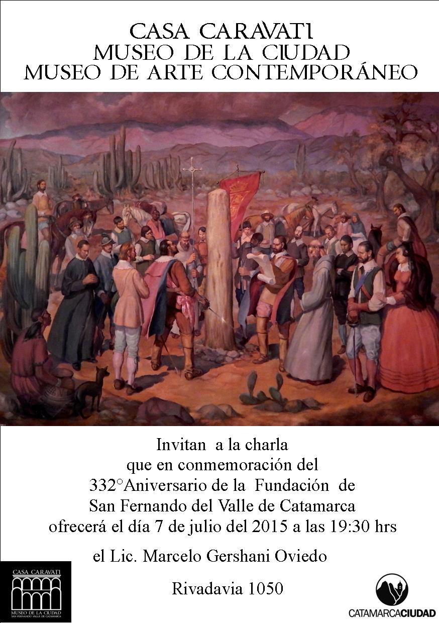En el marco de las celebraciones por el 332º aniversario de la fundación de SFVC, desde el museo Caravati, a cargo del arquitecto Luis Maubecín, se organizó una charla y disertación que estará a cargo del reconocido historiador local, Marcelo Gershani Oviedo, sobre la fundación de Catamarca y sus ramificaciones históricas.