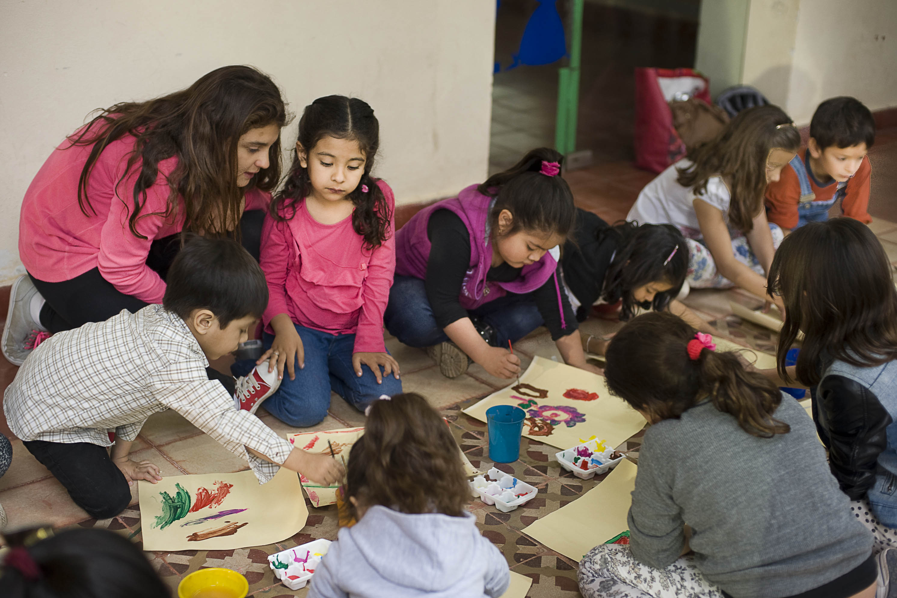los chicos a pintar y distintas técnicas vinculadas a las artes visuales.
