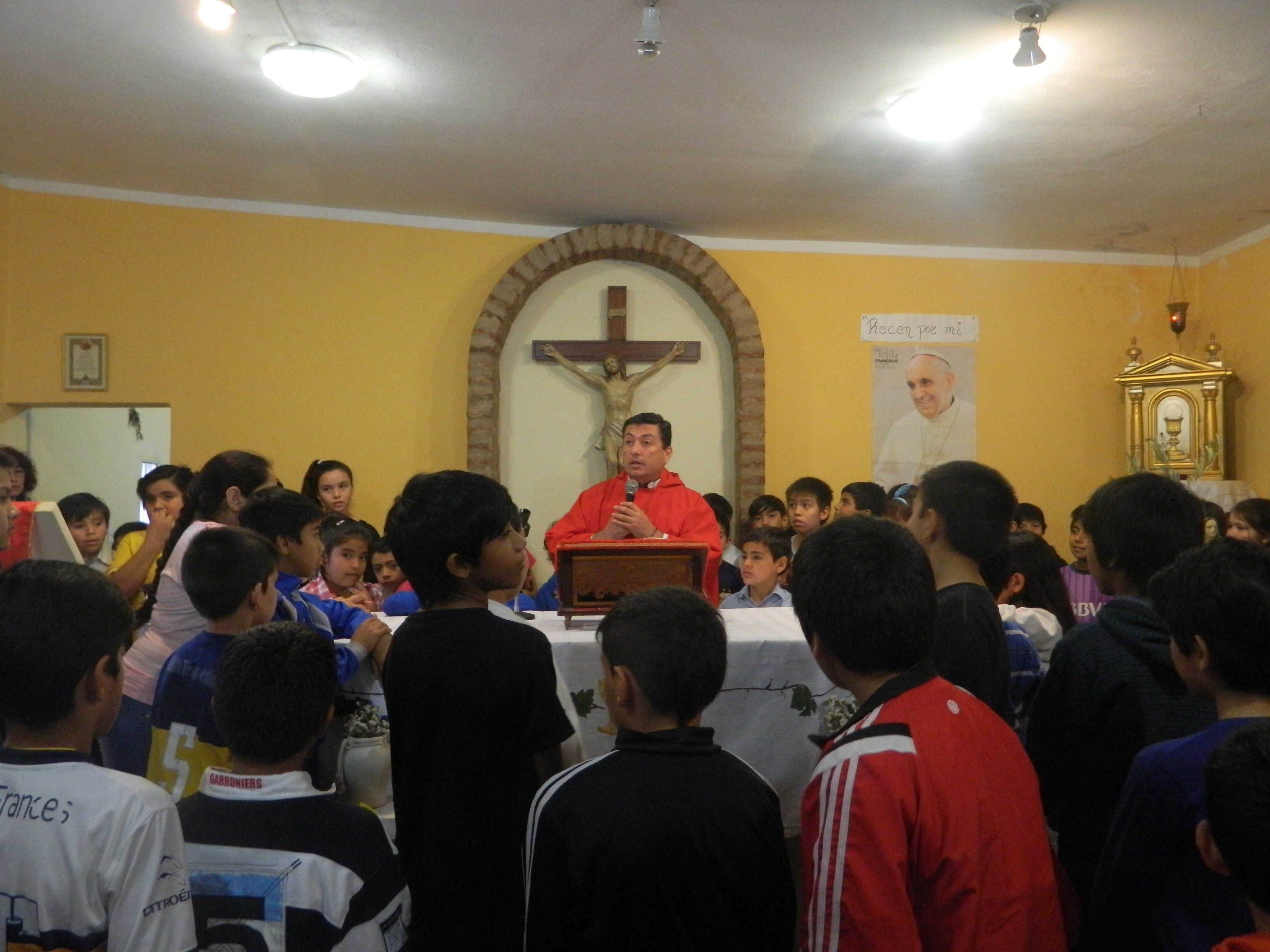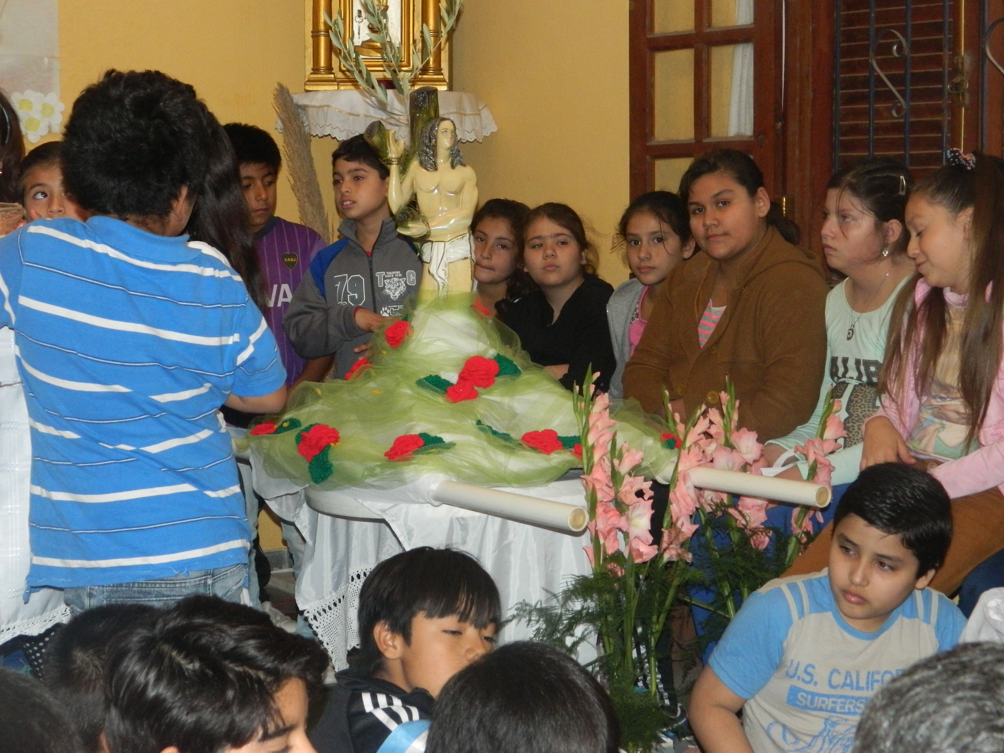 devotos, y los niños tomaron un lugar privilegiado junto al altar para vivir la