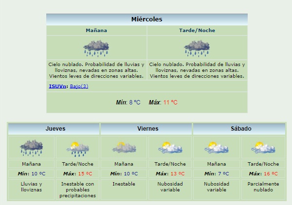 lloviznas con una mínima de 10º y una máxima de 15º.