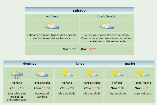 De acuerdo a lo que informa el Servicio Meteorológico