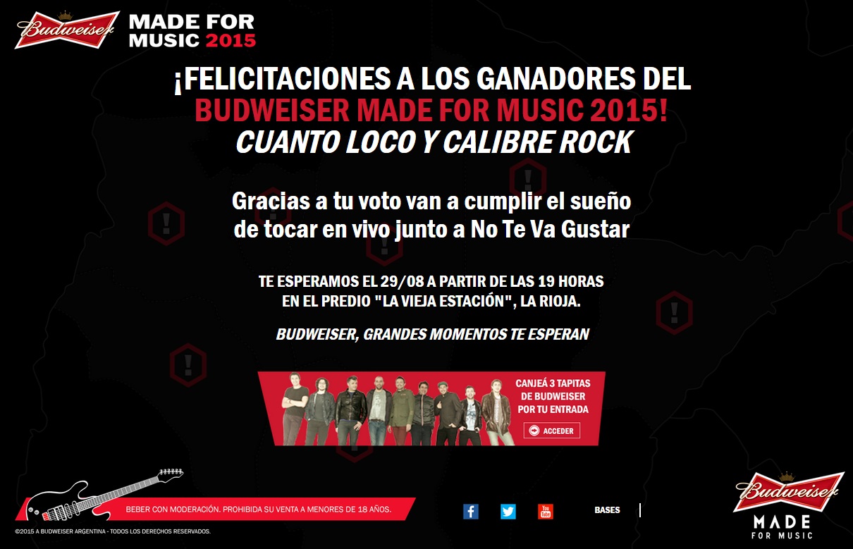 Budweiser, y se ganó el derecho a ser telonera de No Te Va a Gustar, en el