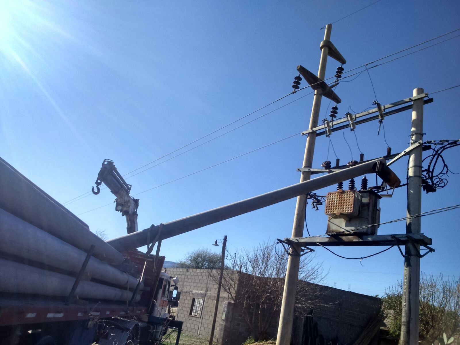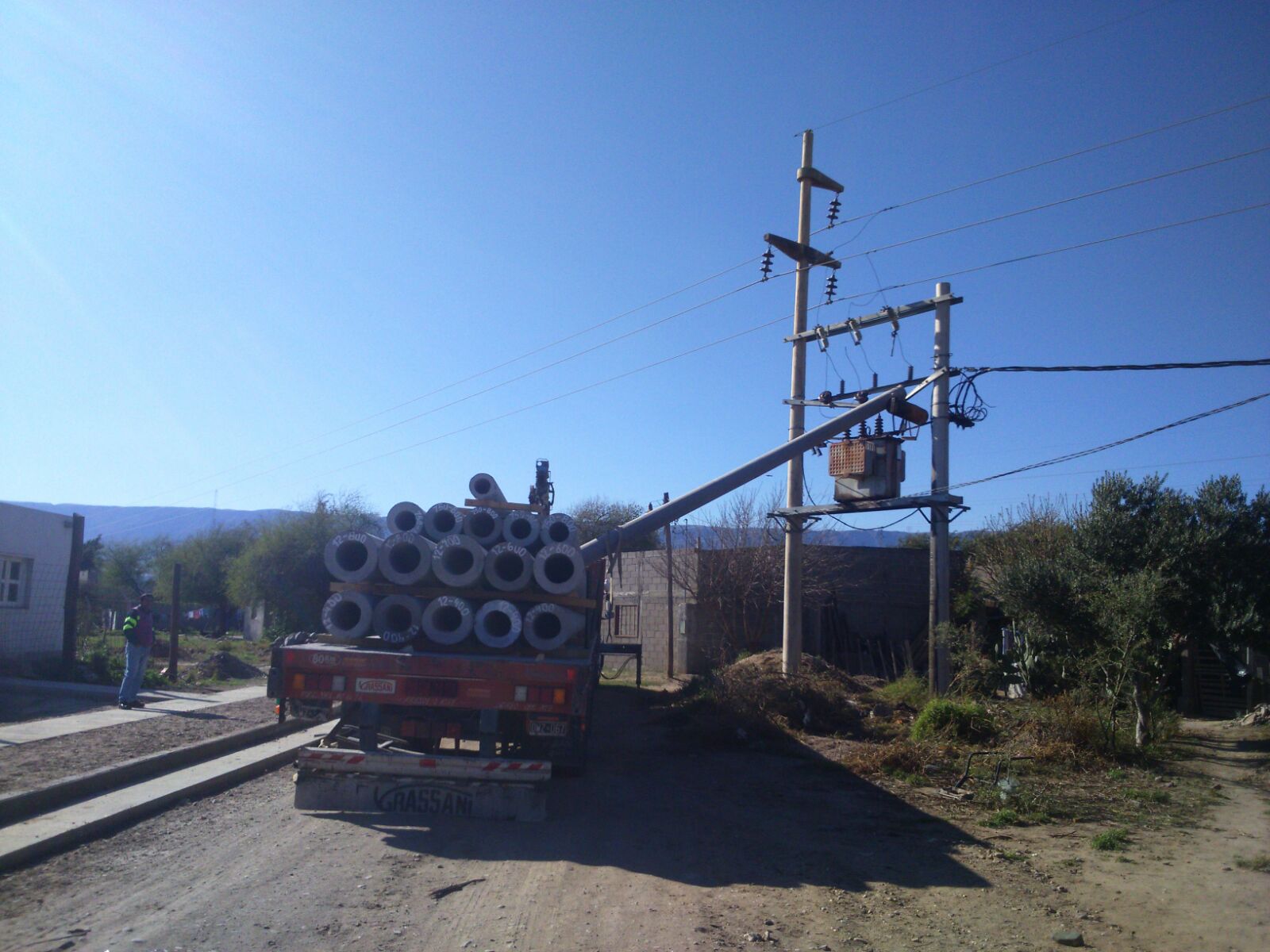 El camión realizaba tareas de descarga de columnas en el B°