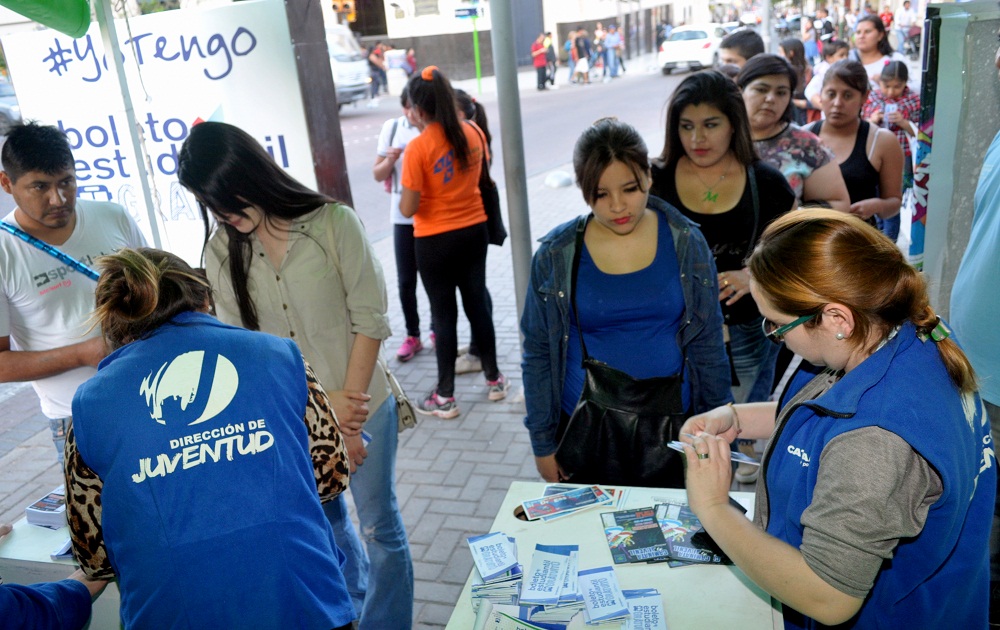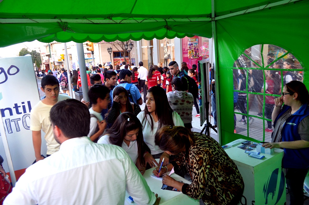 adolescentes y jóvenes al puesto ubicado en la esquina de San Martín y