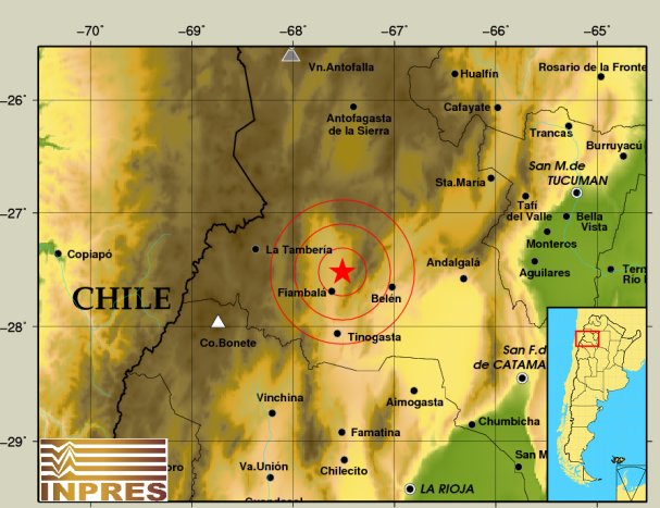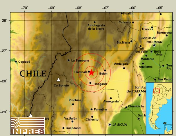 Epicentro: 21 km al NE de Fiambalá, 51 km al O de Belén, 60