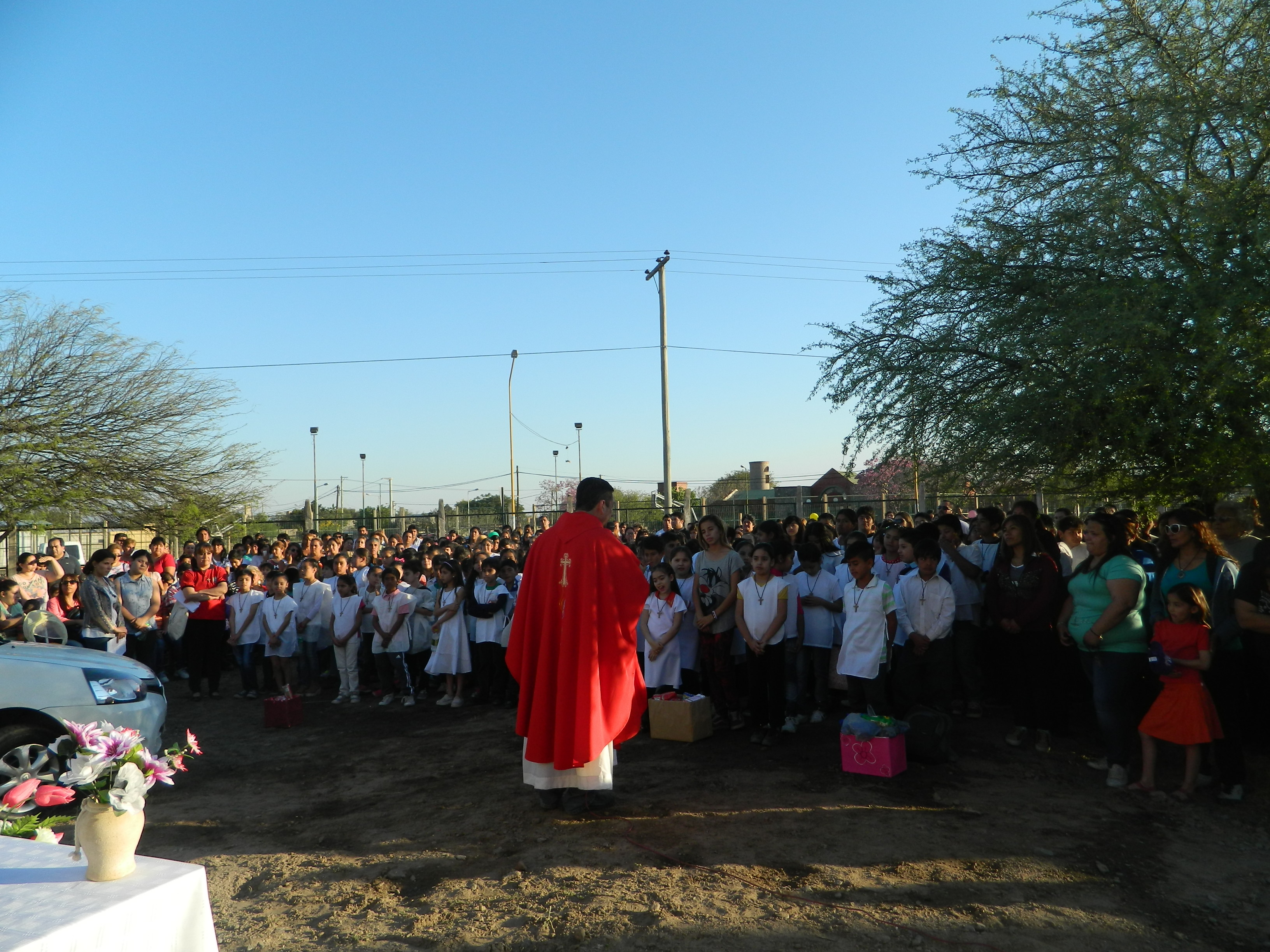 frente a toda la comunidad parroquial. La procesión partió del mini hospital