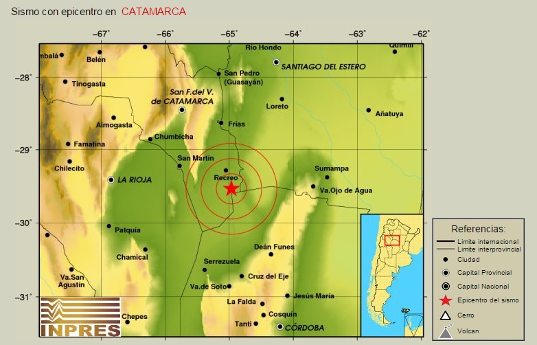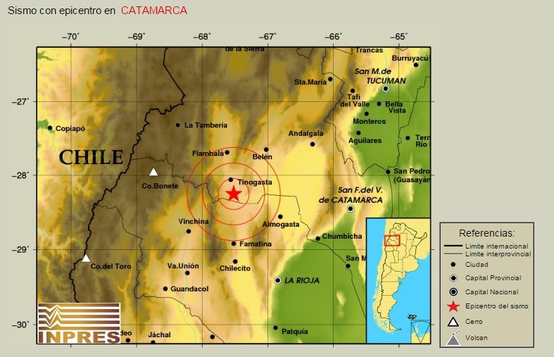 El primer sismo se registró a las 10:45 y tuvo una magnitud de 4,2° en la escala de Richter. El epicentro fue en el departamento Tinogasta, y se ubicó a 142 kilómetros de profundidad.