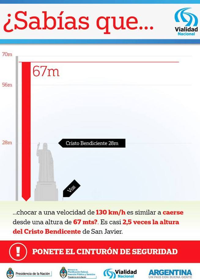 Importante:Precaución al transitar por calzada húmeda: Disminuir la velocidad en al menos un 40%. Atención a la presencia de animales sueltos en la ruta en varios sectores. Se recomienda a los usuarios respetar las velocidades máximas, especialmente en travesías urbanas, el uso de cinturón de seguridad y casco protector en el caso de motociclistas. Encender luces bajas obligatorias.
