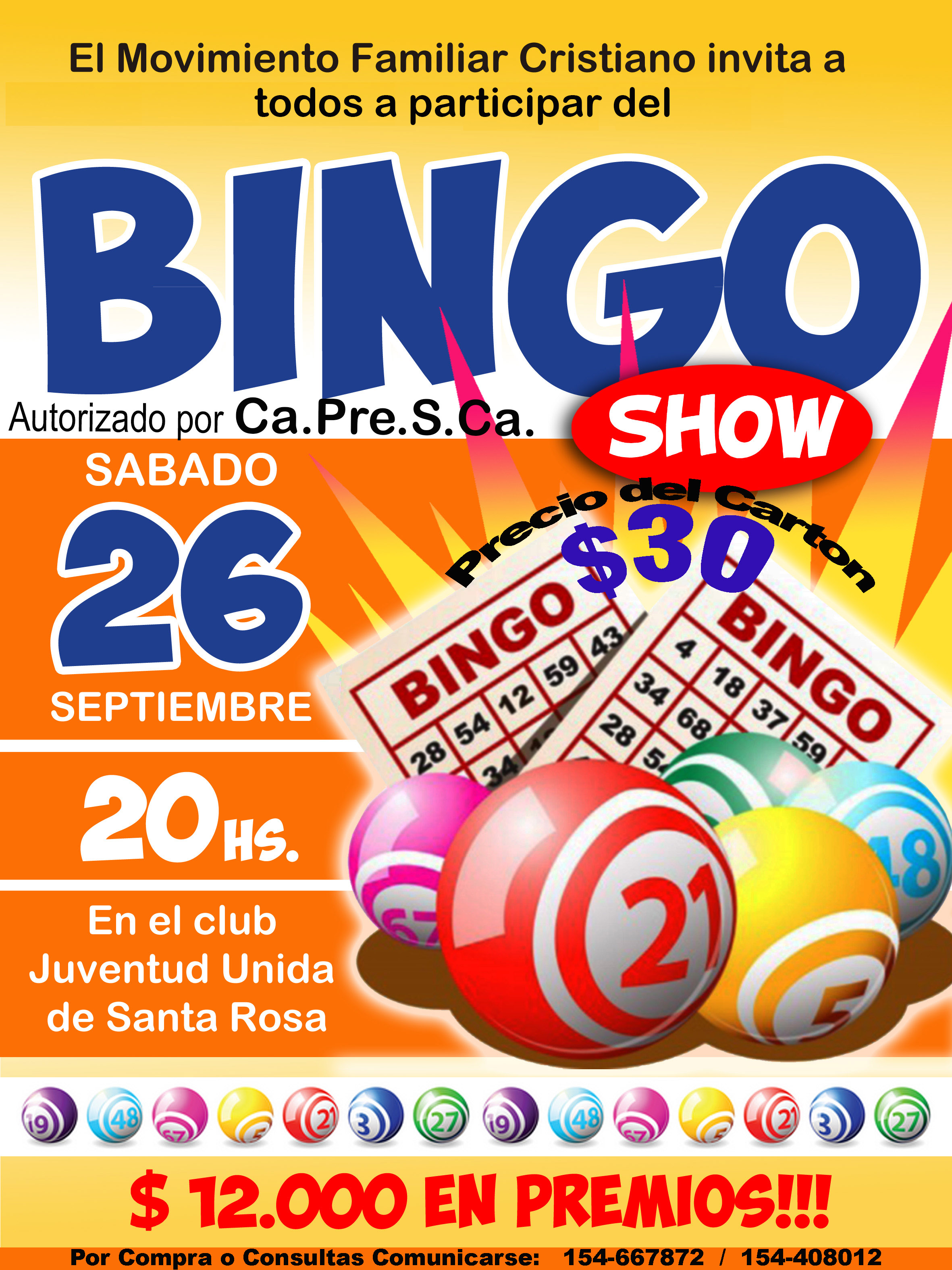 El bingo se realizará en el Club Juventud Unida de Santa