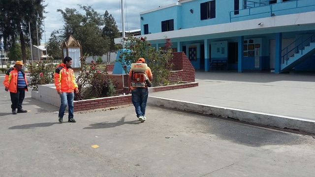 Desde el pasado sábado, cuadrillas de Defensa Civil se encuentran desinfectando en zonas de jardines, oficinas y distintas áreas de la Escuela de Cadetes "Pte. Juan Domingo Perón”; en tanto que desde mañana harán lo propio en el resto de las dependencias con el objetivo de controlar recipientes que puedan acumular agua, colectores de desagües de aire acondicionados, eliminar todo tipo de basura y quitar agua de los huecos de árboles y letrinas abandonadas.