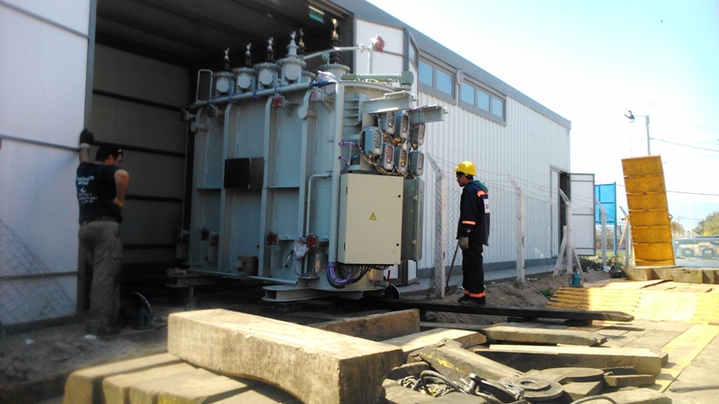 El equipo fue descargado días atrás en el CD2 bajo la supervisión del ministro de Servicios Públicos Ing. Luis Gustavo Aparicio y el Ing. Jorge Nieva. En el proceso de instalación se completarán las obras electromecánicas tanto en 33 KV como en 13,2 KV. Se estima que en 90 días el transformador estará listo para funcionar.