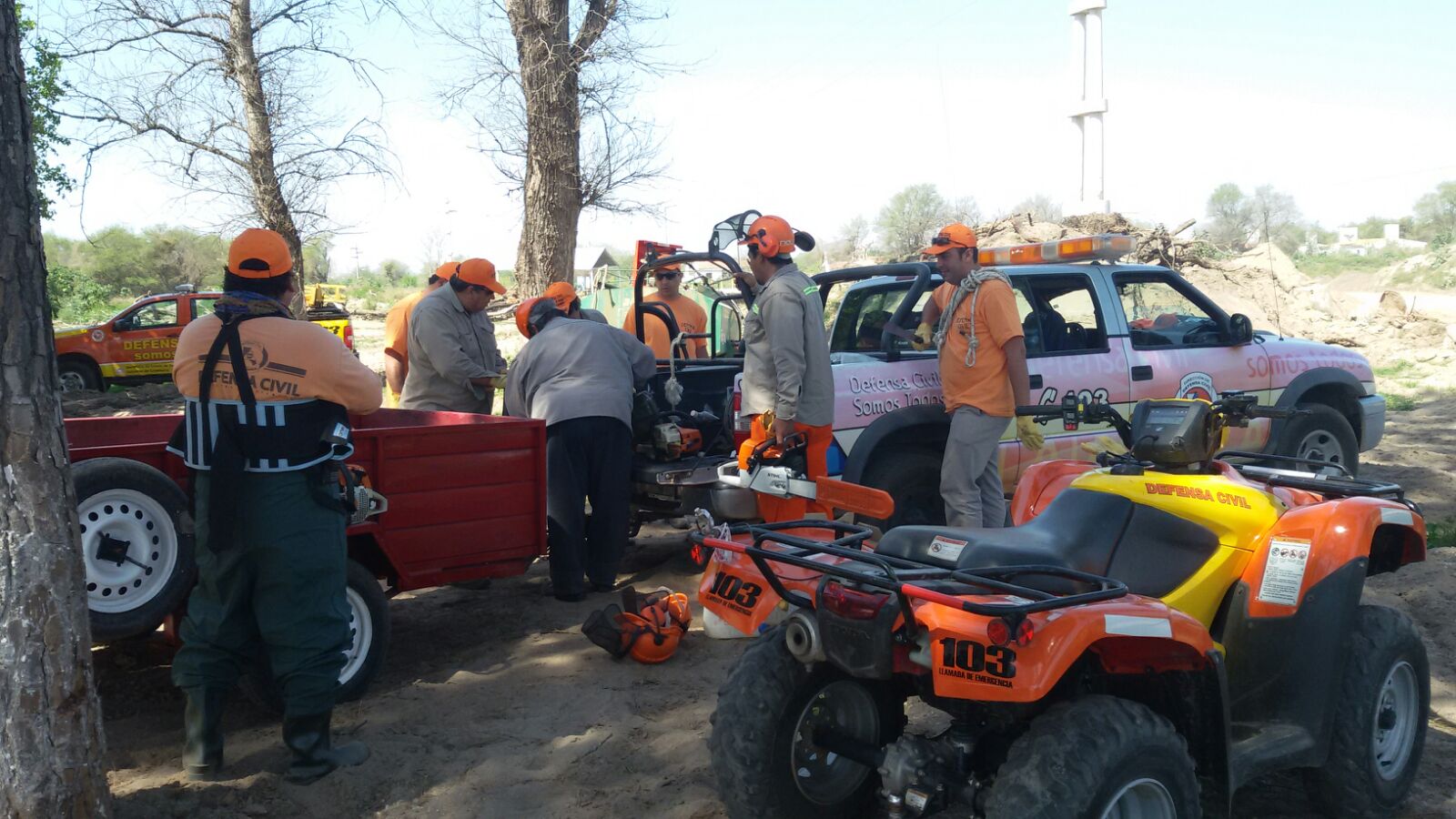 Junto a cuadrillas locales de Defensa Civil, los